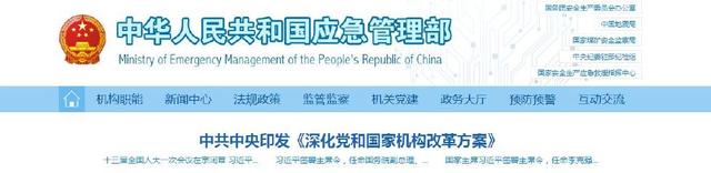 據(jù)《深化黨和國家機構(gòu)改革方案》,為防范化解重特大安全風險,健全公共安全體系,整合優(yōu)化應急力量和資源,推動形成統(tǒng)一指揮、專常兼?zhèn)洹⒎磻`敏、上下聯(lián)動、平戰(zhàn)結(jié)合的中國特色應急管理體制,將國家安全生產(chǎn)監(jiān)督管理總局的職責,國務(wù)院辦公廳的應急管理職責,公安部的消防管理職責,民政部的救災職責,國土資源部的地質(zhì)災害防治、水利部的水旱災害防治、農(nóng)業(yè)部的草原防火、國家林業(yè)局的森林防火相關(guān)職責,中國地震局的震災應急救援職責以及國家防汛抗旱總指揮部、國家減災委員會、國務(wù)院抗震救災指揮部、國家森林防火指揮部的職責整合,組建應急管理部,作為國務(wù)院組成部門。中國地震局、國家煤礦安全監(jiān)察局由應急管理部管理。不再保留國家安全生產(chǎn)監(jiān)督管理總局。